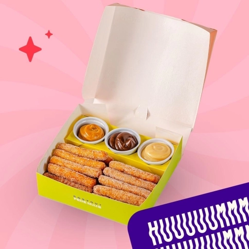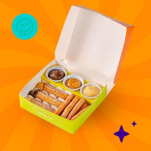 10 Mini churros espanhol + 3 mini churros + 3 tipos de recheios