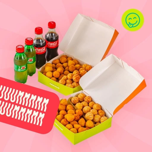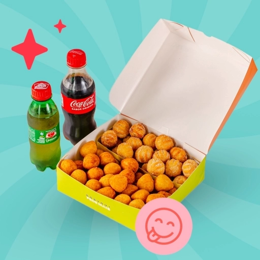 20 salgados + 10 bombinhas de churros + 1 refrigerante pet
