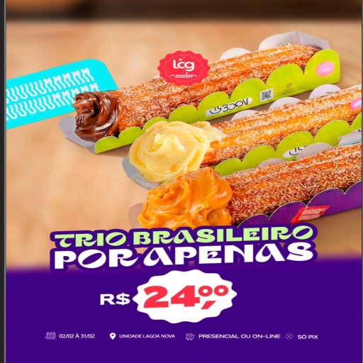 3 churros brasileiro cada um com um recheio a sua escolha.