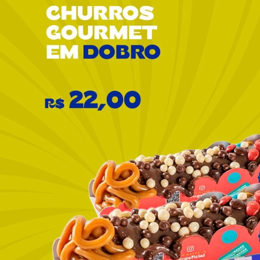 2 churros gourmet com recheios e coberturas a sua escolha.